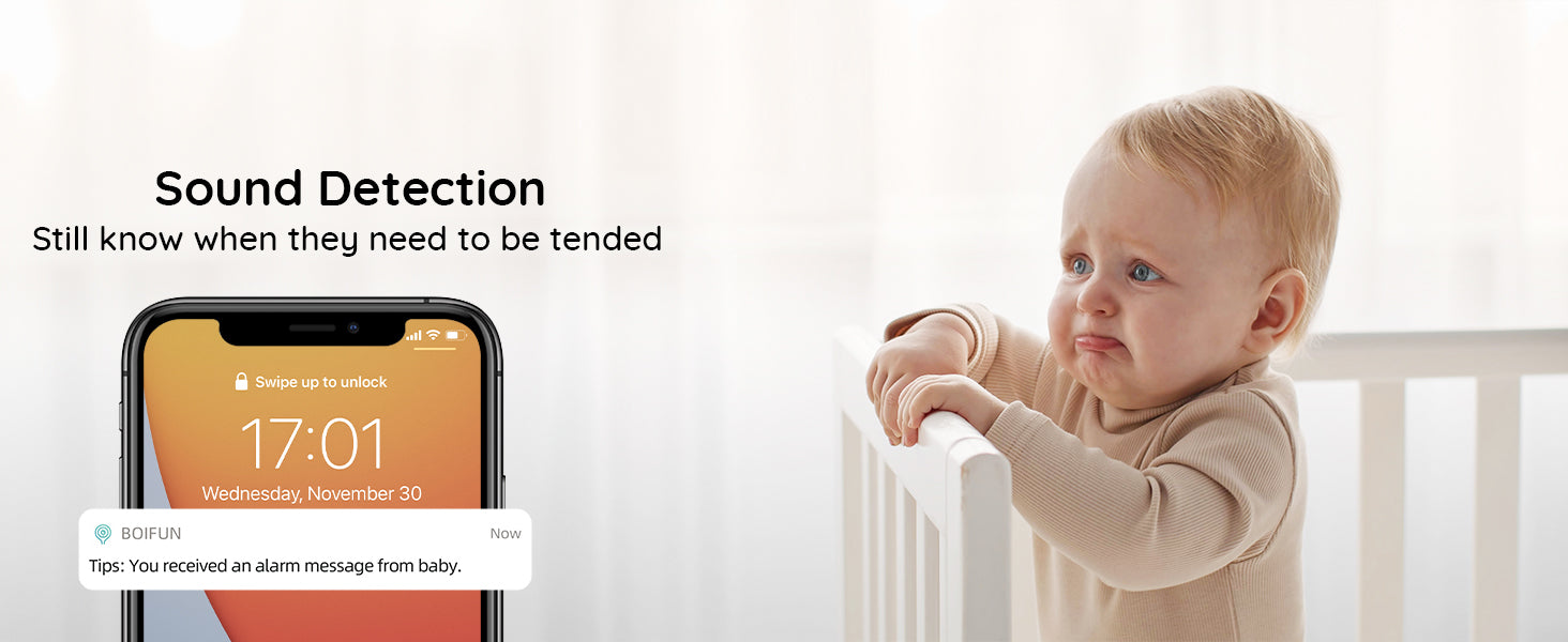 Boifun baby monitor has 2K high-definition and automatic tracking, recording every beautiful moment of the baby. The temperature and humidity monitoring can keep an eye on the baby's condition at any time to ensure the baby's comfortable environment.