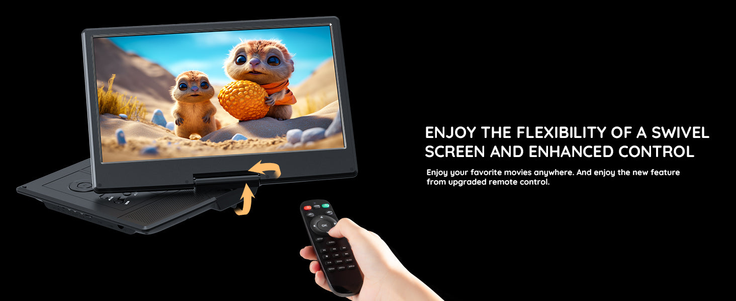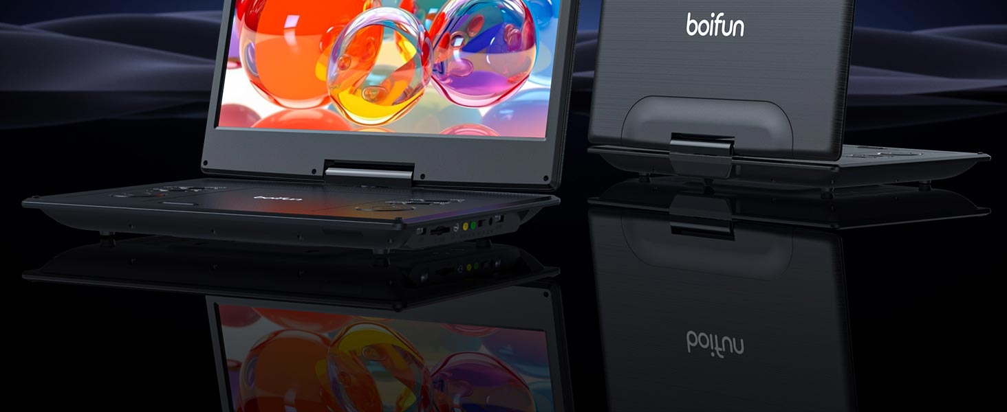 - SCREEN QUALITY: With advanced screen tech, the 14.1" swivel screen of BOIFUN DVD player shines brighter and clearer than its predecessors. Enjoy clarity and vividness with its 1366*768 resolution